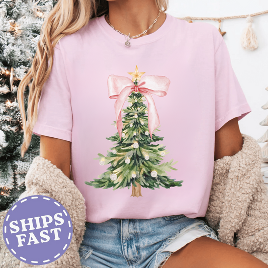 Pink Christmas Tree Bow T-shirt | Sweatshirt